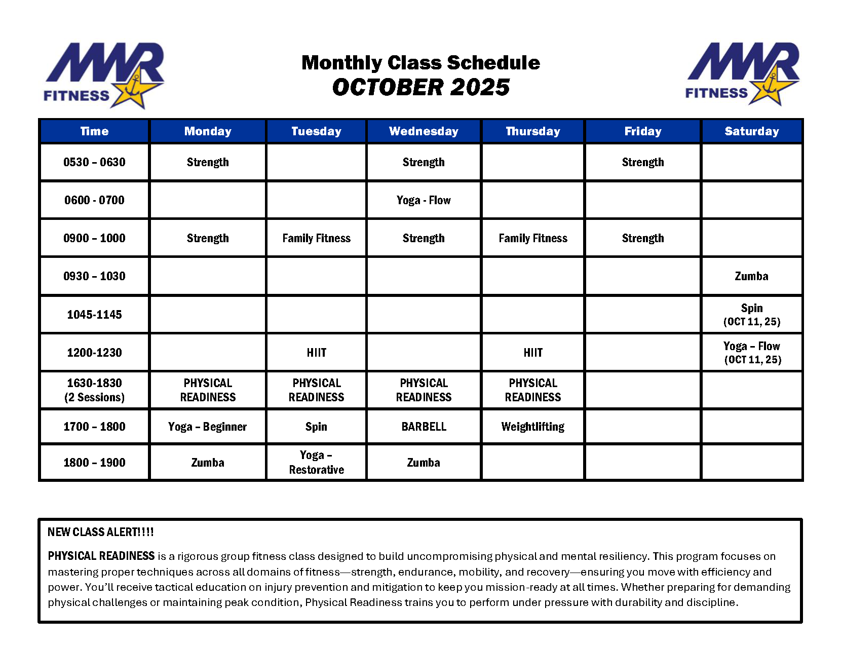 A rigorous group fitness class designed to build uncompromising physical and mental resiliency. This program focuses on mastering proper techniques across all domains of fitness—strength, endurance, mobility, and recovery—ensuring you move with efficiency and power. You’ll receive tactical education on injury prevention and mitigation to keep you mission-ready at all times. Whether preparing for demanding physical challenges or maintaining peak condition, Physical Readiness trains you to perform under pressure with durability and discipline.